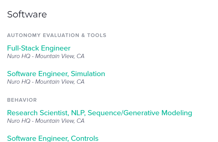 最重要的是,在去年这个求职的低谷期Nuro,依旧人员扩张了186%。现在也在不断放出新岗位👇