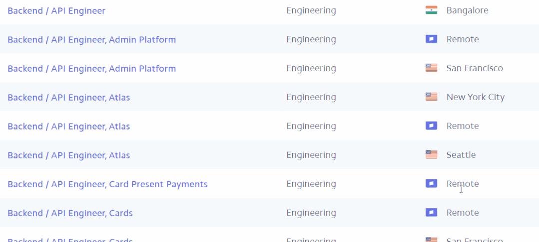 作为被程序员追捧的Stripe,除了因为薪资高以外,**还因为Stripe面试即不考算法,不用写白板!**不过心动不如行动,Srtipe现在还放出了不少的技术岗位👇