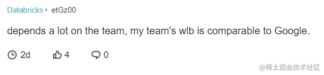 而且Databricks也不乏一些“养老组”,这些组的WLB堪比养老出名的Google。而且diversity也不错,白人,国人都很多,更重要的是有很多成长快的项目。