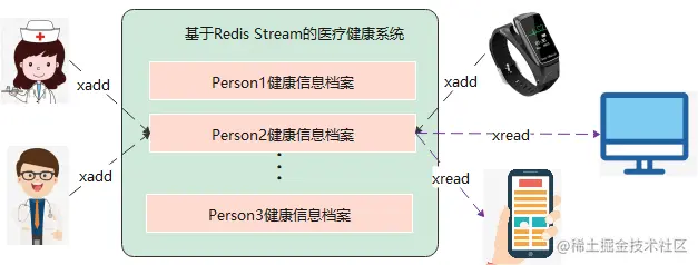 (2)**智慧医疗:**医疗行业的信息化,可以更好地服务于每一个人。为每一个人从出生起建立一份健康档案,记录相应的健康信息,如体检报告、诊断报告、用药信息、以及智能终端实时上传的健康指标。这些信息都是一些时序数据,同样可以采用Redis Stream来实现智慧医疗系统。建立起智慧医疗系统后,使用终端可以查看所有的医疗信息,并会提示患者按时吃药,在终端上传身体指标异常时,会自动报警并预约挂号。现阶段每个医院都有自己的信息系统,不同的医院很难查到同一个患者的医疗信息,在未来,医疗上云将有利于解决医疗信息孤岛,更好的帮助每一位患者。