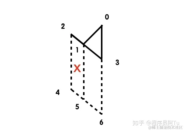 对于非简单多边形,使用三角剖分只能得出较为满意的结果,但不能保证其正确性。从下图四个顶点构成的非简单多边形的三角剖分结果可以看到,多边形渲染时会丢失顶点并且产生错误的三角形,无法还原数据真实情况。