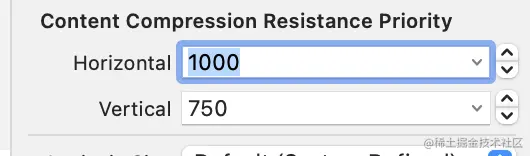第一个Label被压缩了,里面的文字被省略了;第二个label正常展示了出来。此时我们把第一个label的Content Compression Resistance Priorities设置到大于第二个label。