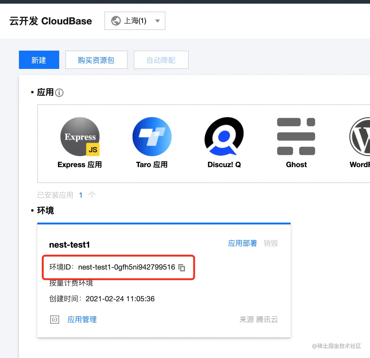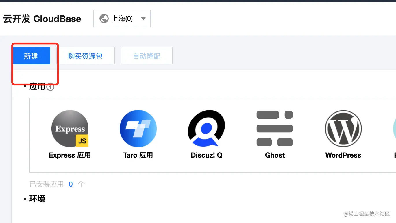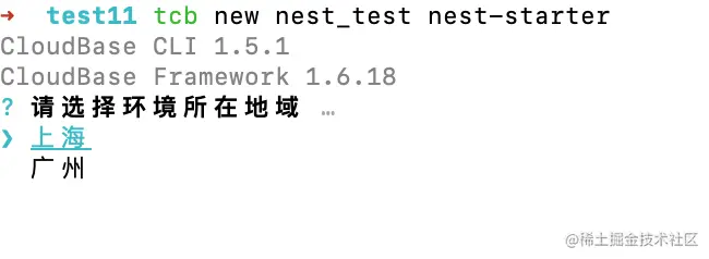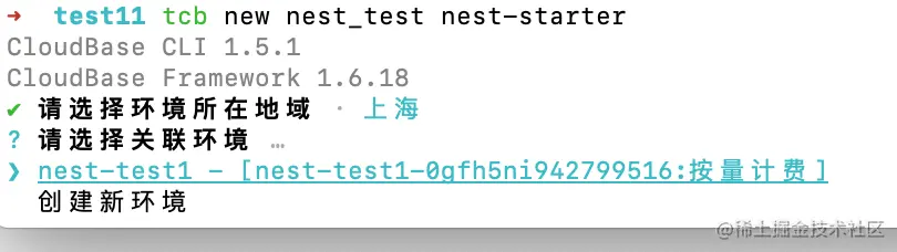 tcb new <appName> [template] # 比如 tcb new nest_test nest-starter -