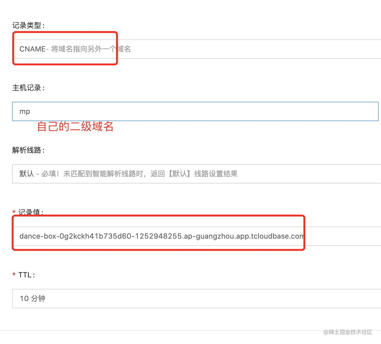 4、注意解析子域名的方式和上面博客写的有点区别,不是填写自己的
