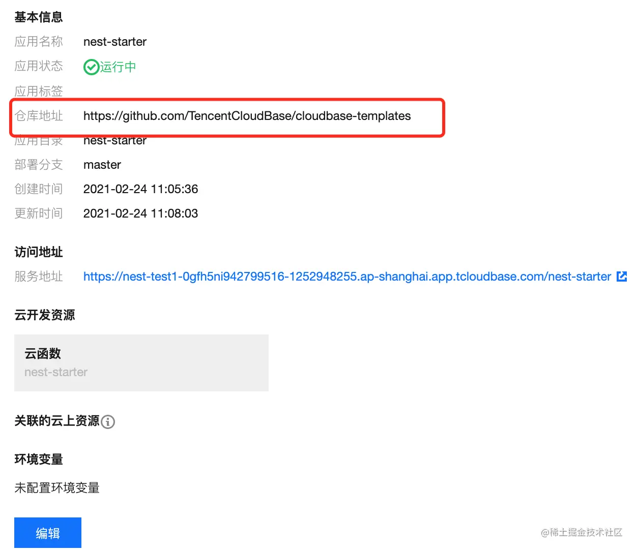.env的那也是在云托管的时候使用 - 代码仓库是公开,不能使用私有仓库,私有仓库目前是云托管支持