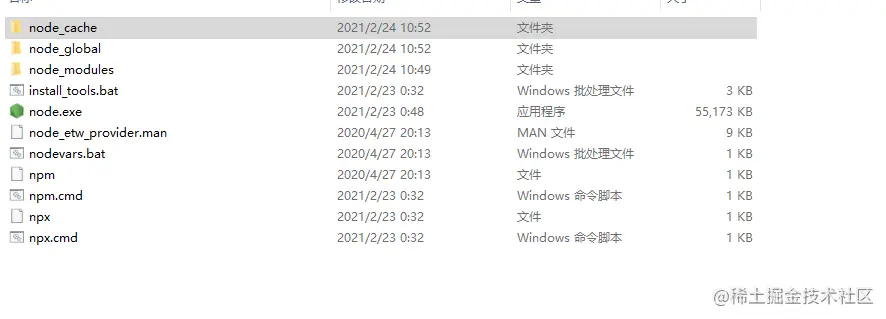 - 先在安装node的文件夹里面建两个新的文件夹,node_global(放置全局路径)和node_cache(放置缓存路径)