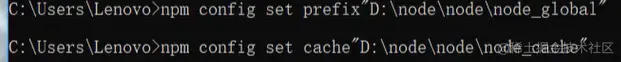 2.在命令行修改路径 - npm config set prefix 'xxx(你的node_global路径)',在命令行修改路径 - npm config set cache 'xxx(你的node_cache路径)'
