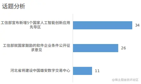 话题方面,内容聚类显示,2月8日~21日,舆论聚焦的信创话题包括“工信部宣布新增5个国家人工智能创新应用先导区”、“工信部就国家鼓励的软件企业条件公开征求意见”和“河北省将建设中国雄安数字交易中心”。