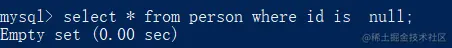 select * from person where id is null;