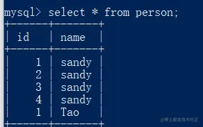 首先查看person表的数据