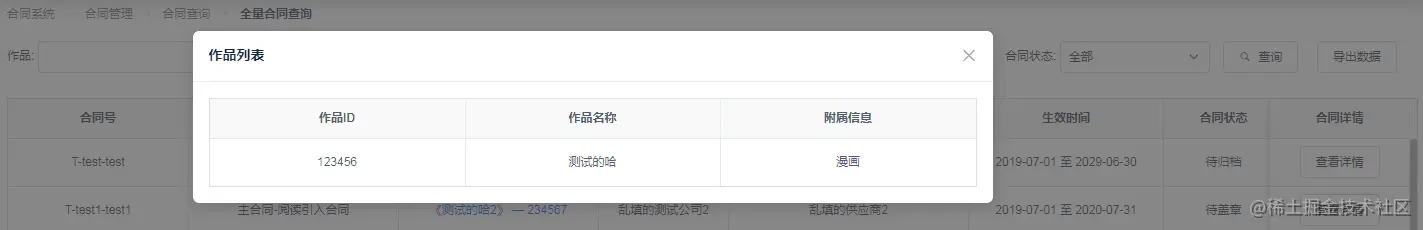 如上图代码所示,在tabPaneColumns中只需把对应的tab数据处理好,传入点击按钮的处理事件,余下的处理交由ContractTabs就好了,这种形式的处理在删减该逻辑时,直接把<ContractTabs> <ContractTabs>删除,就能移除该功能,不会影响到其他模块的代码。
