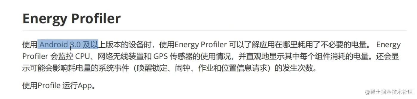 如果使用8.0以上的手机可以使用Energy Profiler可以了解应用在哪里耗用了不必要的电量