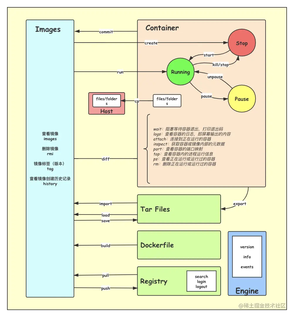 参照网上的经典Docker命令图片重新绘制。