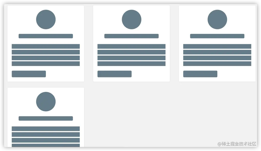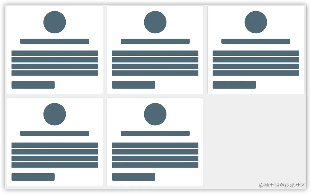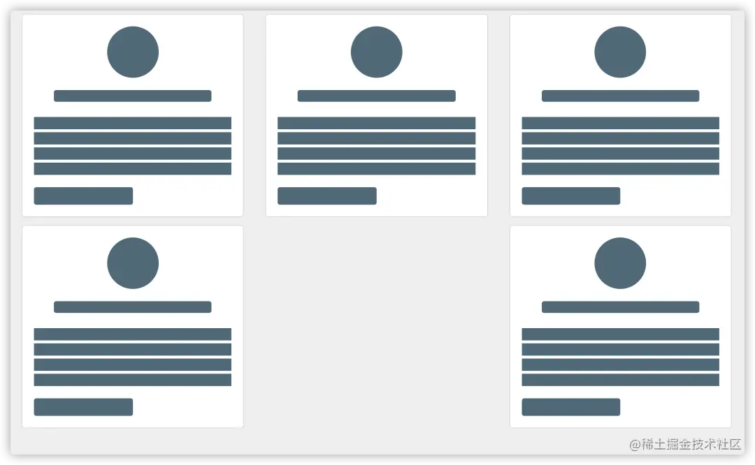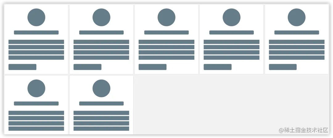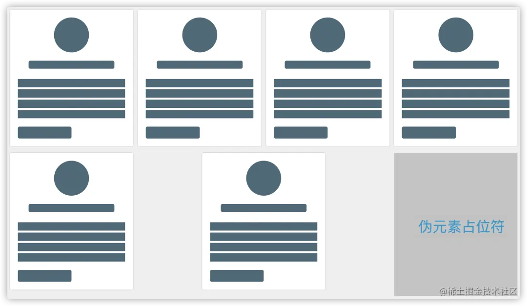 注意,伪元素的flex-basis建议设置的和卡片的flex-basis(或宽度)等同。这个时候你将看到像下面这样的示例: