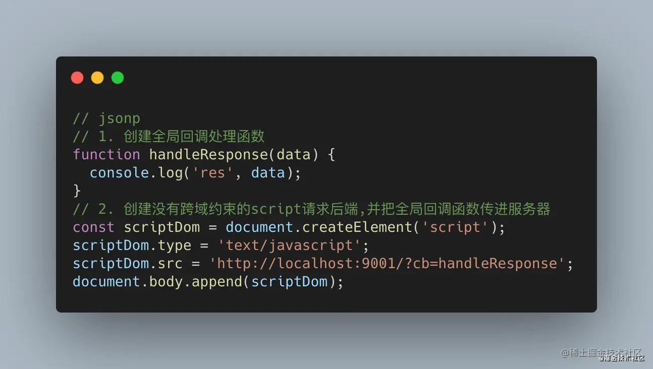 比较常见的一种方法就是jsonp,jsonp是利用script发送get请求不受跨域影响原理,通过注册全局回调函数,并把回调函数名以参数方式放入script标签url发送给后端,后端动态生成调用回调函数的脚本。