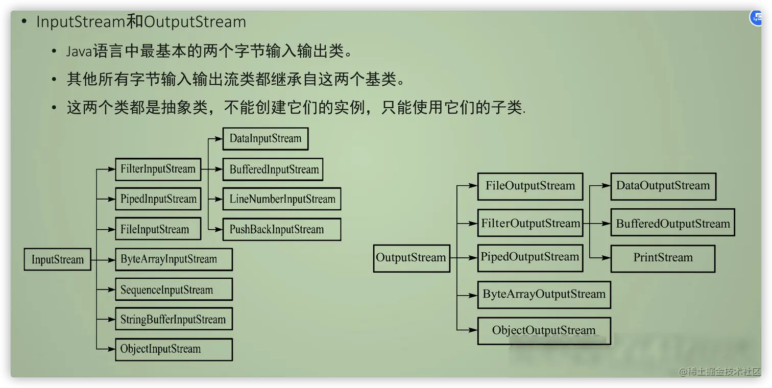 - 字节流:按照字节读取数据(InputStream、OutputStream)
