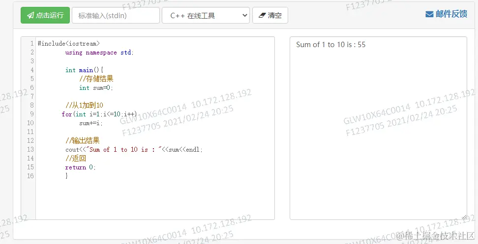 输出:输出1+2..+10