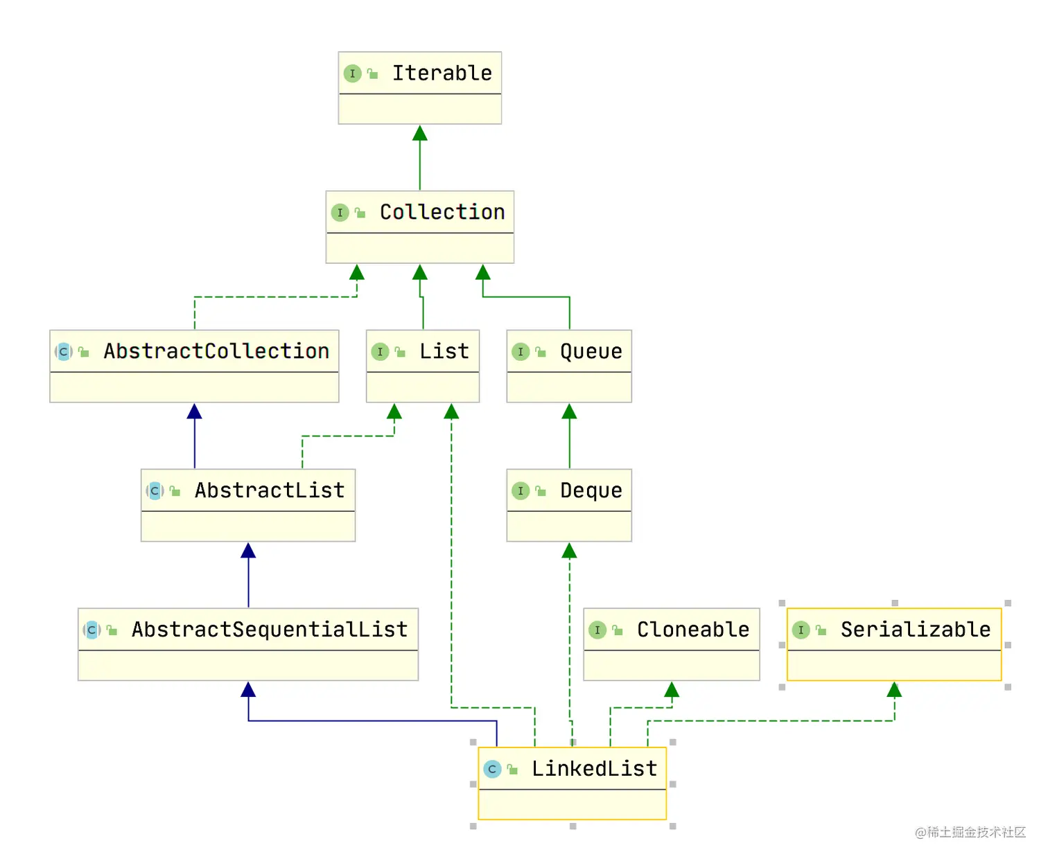 LinkedList 继承关系图: