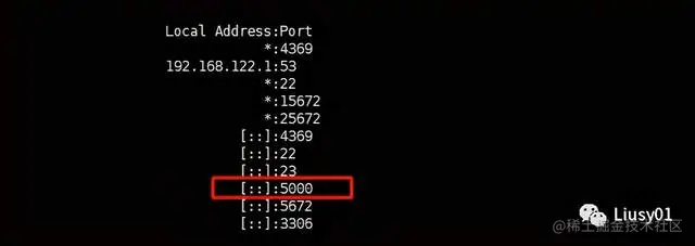 其默认监听5000端口,使用ss -tnl查看linux上端口监听情况