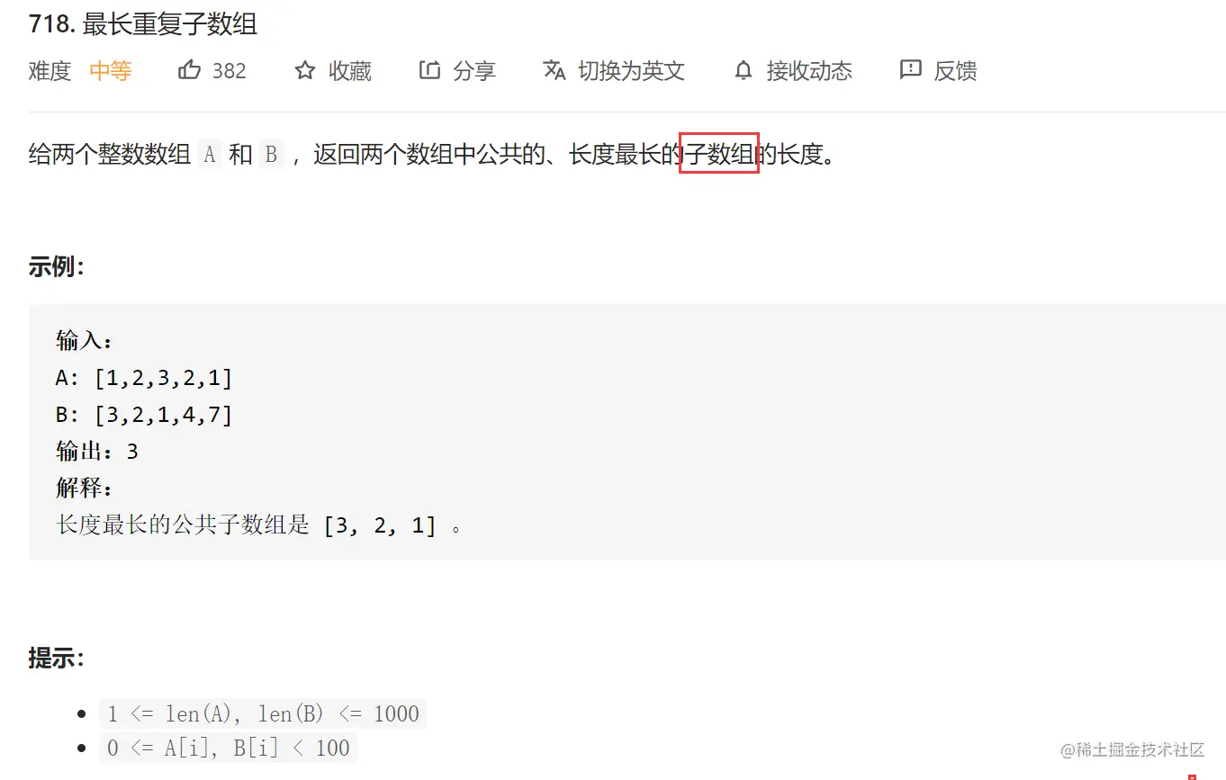 dp[i][j]表示以A[i - 1]和B[j - 1]为结尾的公共子数组的最长长度 - 当