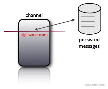 - 主要在内存中(超出某个水平,消息将以透明的方式保存在磁盘上)