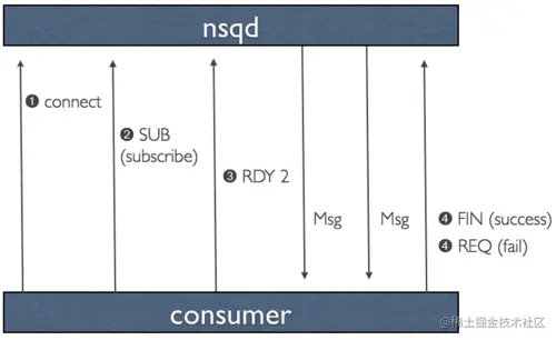 NSQ TCP协议是面向推送的。连接,握手和订阅后,消费者将处于的RDY状态0。当消费者准备好接收消息时,它将RDY状态更新为将要接收的消息数。NSQ客户端库在幕后持续对其进行管理,从而形成了流控制的消息流。