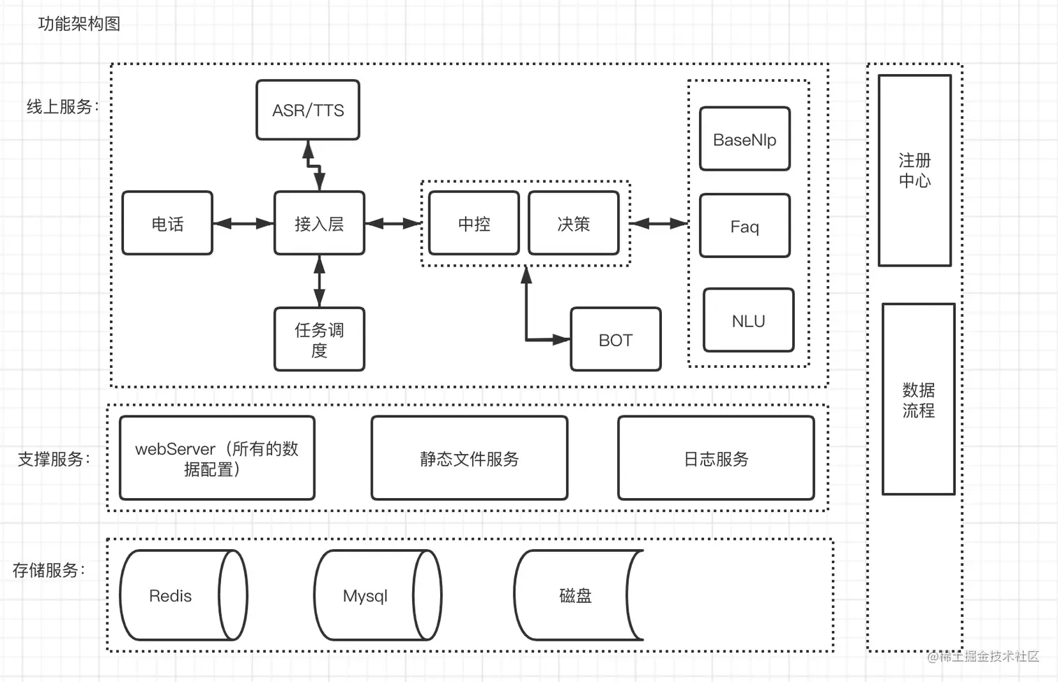 首先介绍下架构实战的业务背景。下面是智能外呼项目部署架构图。