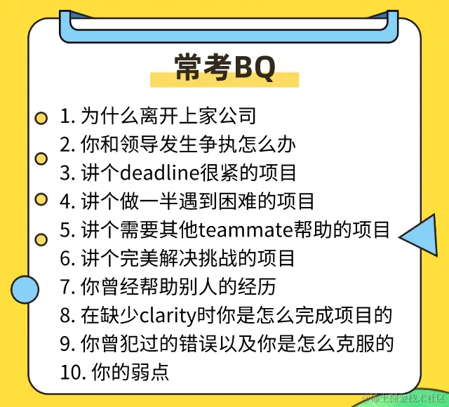 大厂如此看重BQ,是因为算法题只能区分求职者的技术水准,而BQ能很好的考察面试者的工作风格、解决conflict以及沟通协作等能力,所以BQ千万要重视起来!