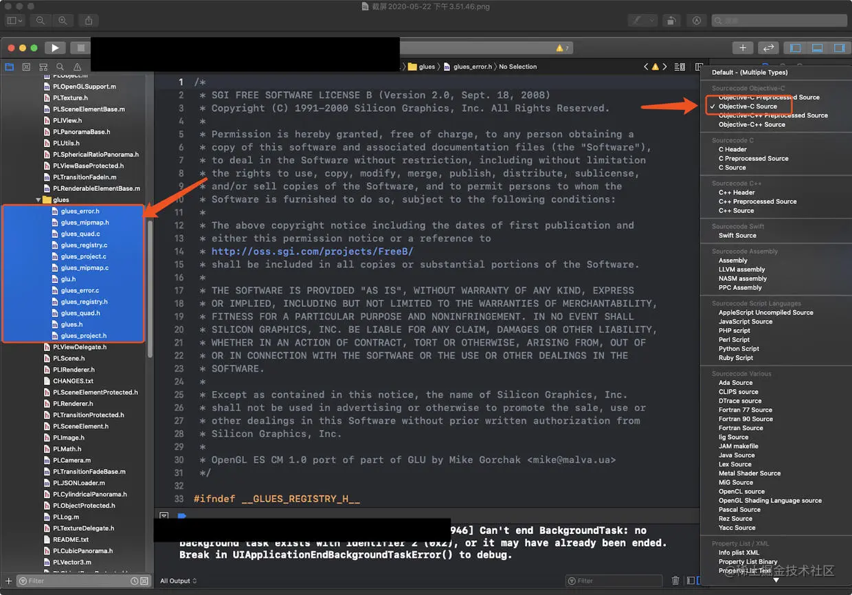 把图中的c文件改成OC源。