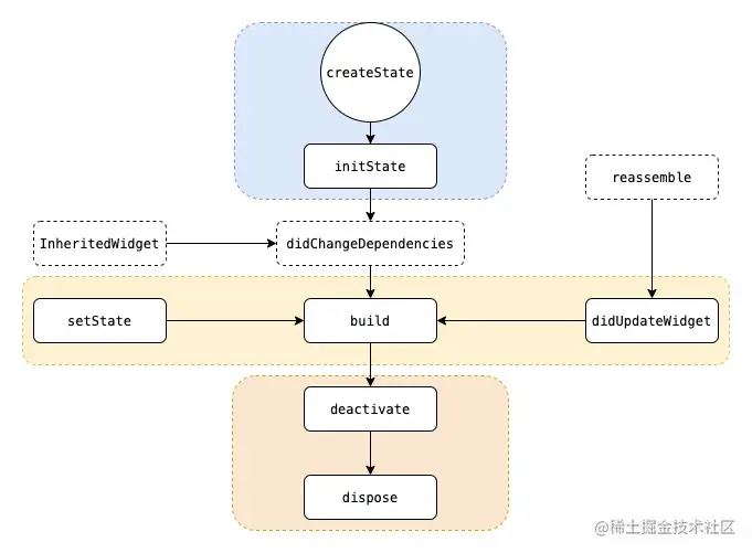 flutter生命周期其实就是Widget的生命周期,生命周期的回调函数体现在了State上面。 主要可以分成两方面讨论