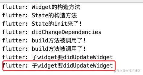 didUpdateWidget只要在父widget中调用setState,子widget的didUpdateWidget就一定会被调用,不管父widget传递给子widget构造方法的参数有没有改变。