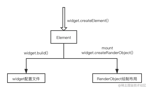 - 3、调用state中的build方法,并且将自己(Element)传出去