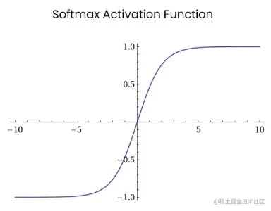 Softmax 是用于多类分类问题的激活函数,在多类分类问题中,超过两个类标签则需要类成员关系。对于长度为 K 的任意实向量,Softmax 可以将其压缩为长度为 K,值在(0,1)范围内,并且向量中元素的总和为 1 的实向量。