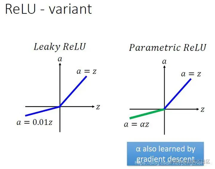 leak 有助于扩大 ReLU 函数的范围,通常 a 的值为 0.01 左右;