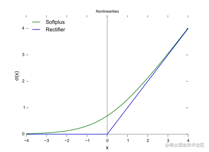Softplus 函数类似于 ReLU 函数,但是相对较平滑,像 ReLU 一样是单侧抑制。它的接受范围很广:(0, + inf)。