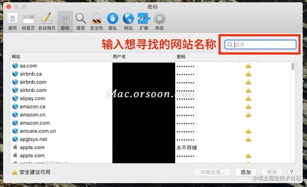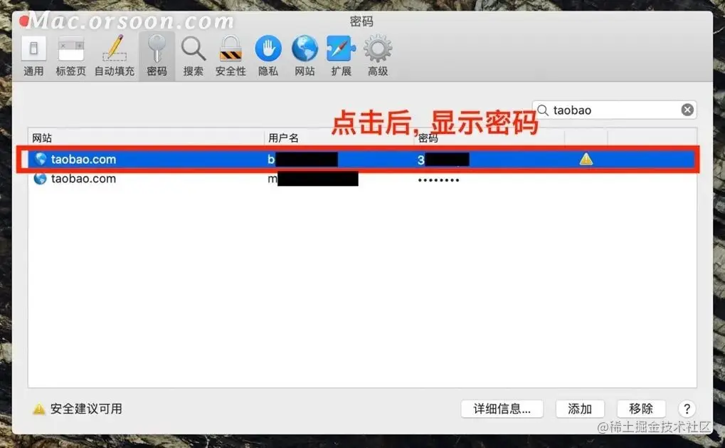 其实在 Mac 系统的 Safari 浏览器中,可以通过使用主机登录密码的方式找到那些在浏览器帮你存储的密码,这是非常方便有效的工具。