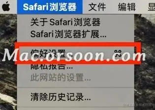 这里要注意 → 打开的是“ Safari 的偏好设置”,而不是“系统偏好设置”