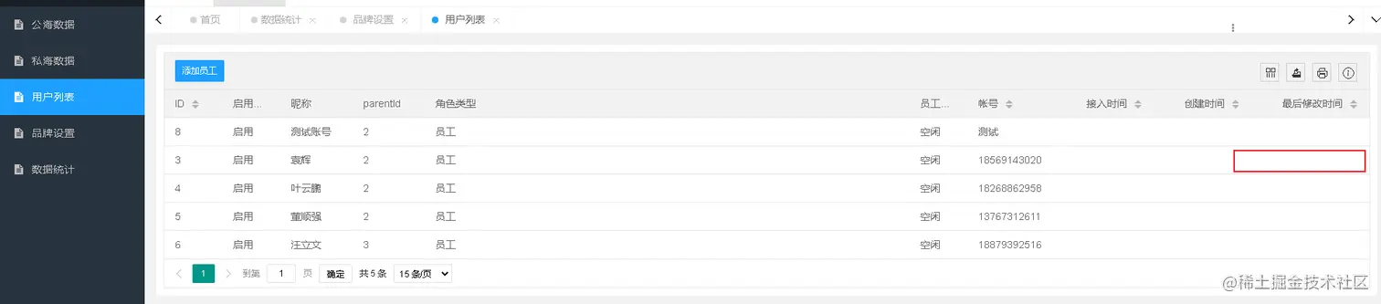 员工私海列表和操作
