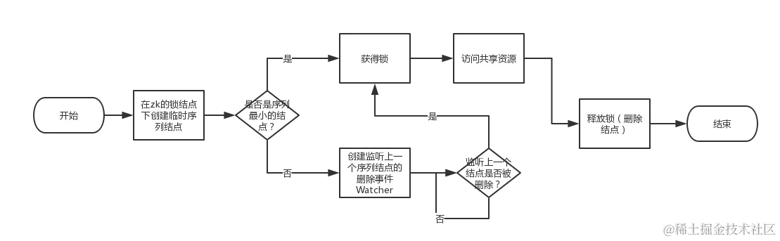 zookeeper实现分布式锁 乐享非凡 2021-02-25 94 阅读1分钟 在获取锁的时候创建监听该锁上一个锁的删除事件,这样可以避免“羊群效应”,在一个锁结点被释放(删除)时不会唤醒所有在等待的锁结点,可以节约网络和服务资源。 参考实现: github.com/wxisme/zoop…