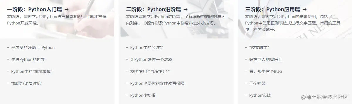 涵盖Python基础语法、高级语法、面向对象编程等,30章节核心内容,100+练习题,10+项目实战,理论与实践有效结合
