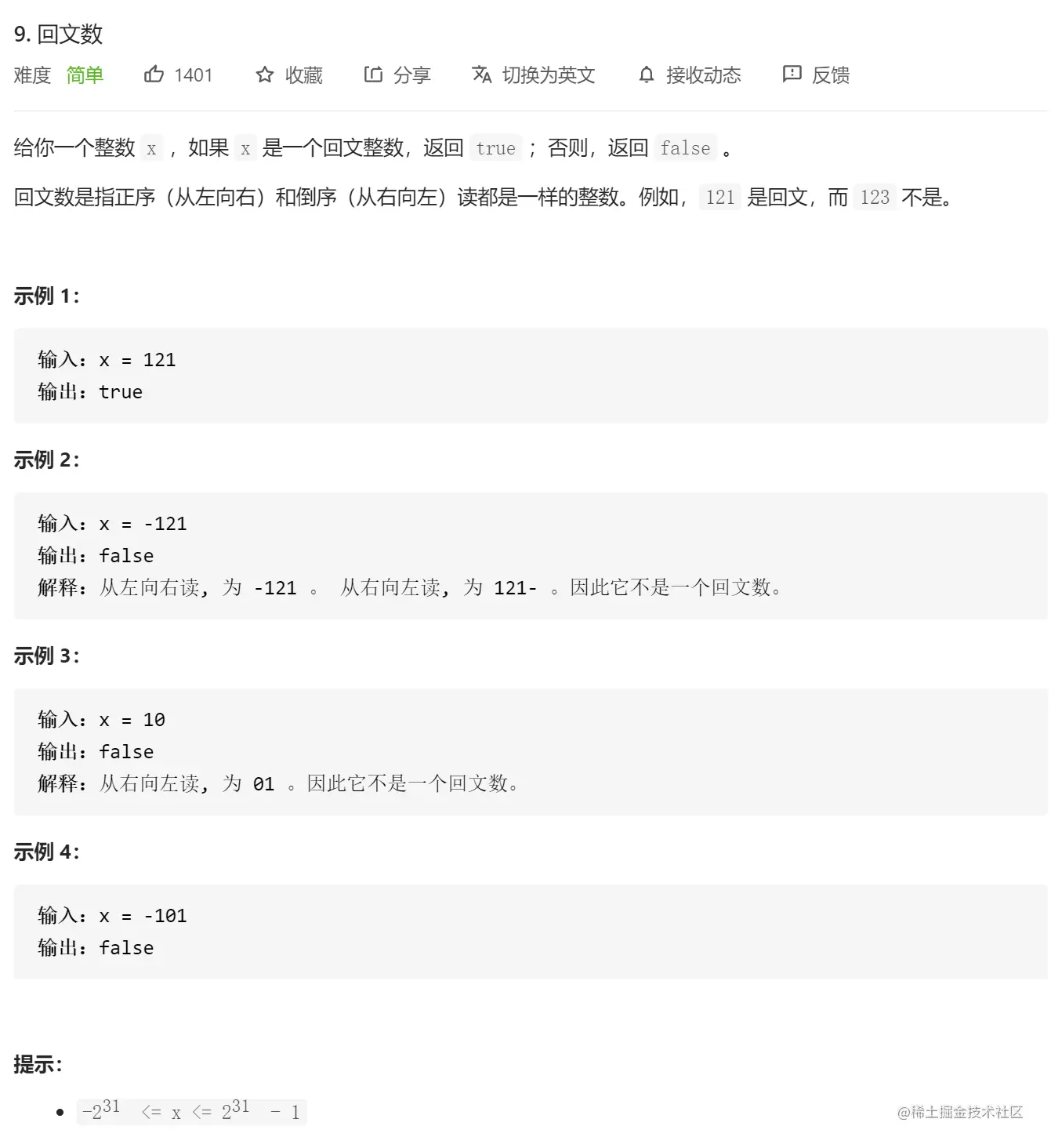 public boolean isPalindrome(int x) {