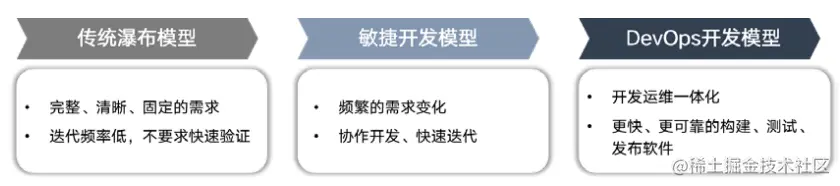 伴随云原生开源生态不断完善、以及复杂功能不断下沉到云,基本统一了软件部署和运维的基本模式。在 DevOps 之前,从业人员使用瀑布模型或敏捷开发模型进行软件项目开发。DevOps 作为Development和Operations 的组合,被定义为实现软件开发和 IT 团队之间流程自动化的一组实践,这些实践建立在团队之间协作文化的基础上,填补了开发端和运维端之间的信息鸿沟,以便更快、更可靠地构建、测试和发布软件,目前已经成为主流的软件开发交付模式。