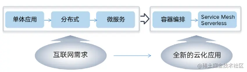从技术需求的角度来看,微服务架构是解决单体复杂度问题的首选方式,却带来整个系统的整体复杂度大幅增加,容器技术和 Kubernetes 分别解决了微服务架构下大量应用的部署、以及容器的管理和调度问题,同时,Kubernetes 也为 Service Mesh 提供了更好的底层支撑,也带来了底层基础设施的 Serverless 云原生化和中间件能力的进一步下沉。