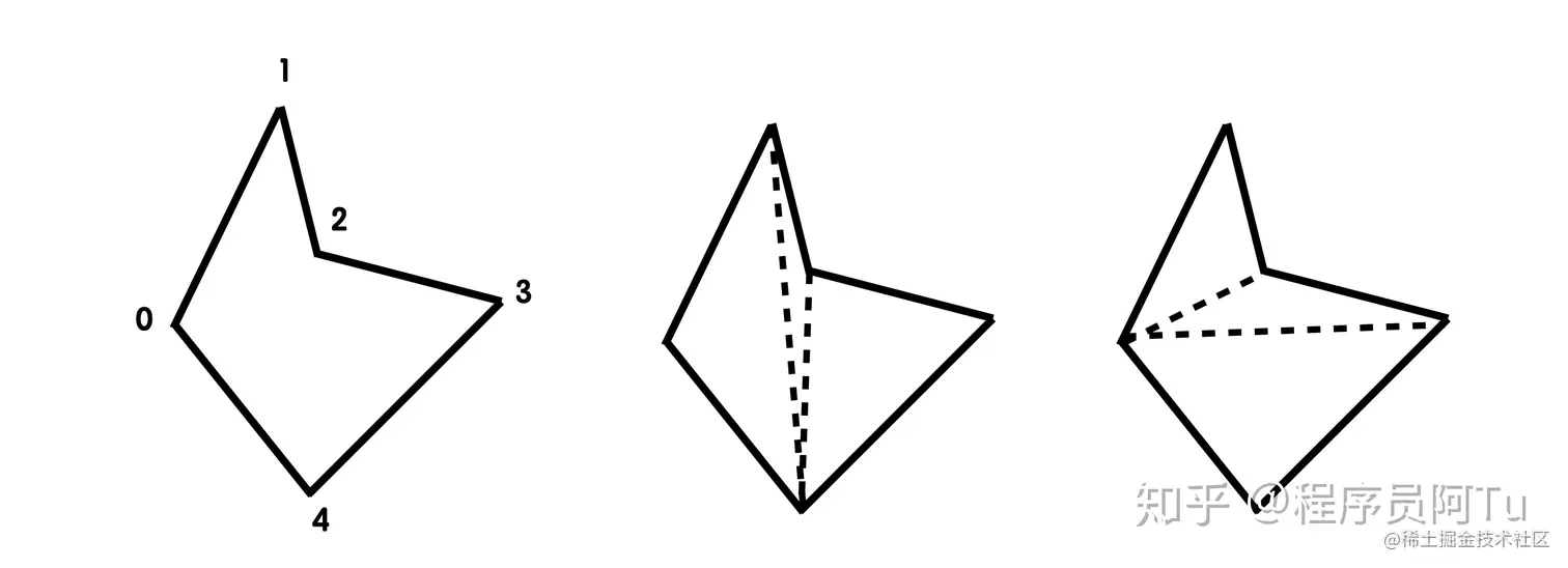 拆分为三角形的过程被称为三角剖分,常用的三角剖分算法是耳切法(Ear Clipping),比较成熟的方案是Mapbox的earcut,对于有 [公式] 个顶点的多边形,其时间复杂度为 [公式] ,值得注意的是,三角剖分的解可能是不唯一的,任何一种剖分方式都能够渲染得到面,但细小的三角形更容易使面中的同一像素绘制多次,造成过度绘制(Overdraw),因此根据多边形特征做一些剖分次序的调整可以作为一个优化点。