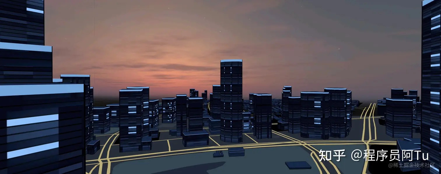 解决了数据造成的闪烁问题后,就可以在建筑的侧面和顶面使用纯色或者纹理贴图进行装饰,搭配天空盒和一些纯色元素去装饰,已经可以简略模仿出城市的效果。但在当前的建筑拔起渲染方式下,只能通过贴图的形式去表达建筑细节,如果需要更精细的表达效果,例如玻璃窗体结构、楼顶设施等,需要增加额外的三角形去进行呈现。