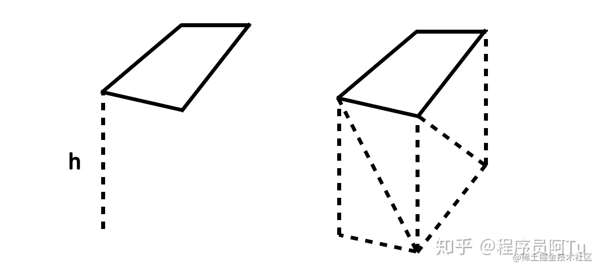 顶面渲染流程和闭合区域面一致,侧面则是根据楼高进行绘制,在每两个相邻顶点间渲染一个矩形从而构成闭合体的侧面,为了减少绘制次数通常只绘制朝向外侧的侧面,底面在正常视角下看不到,也可以酌情选择是否绘制。