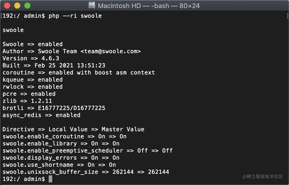 至此,集成环境下的PHP swoole扩展安装完成!