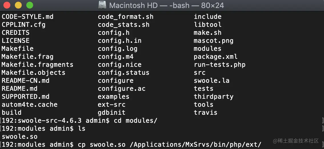 2.复制swoole安装目录下的modules/swoole.so到集成环境的php /ext/目录下