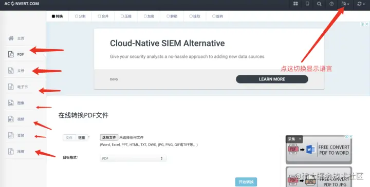 它的功能非常强大,支持转换的文件类型包括:PDF 、文档、电子书、图像、视频、音频、压缩文件。