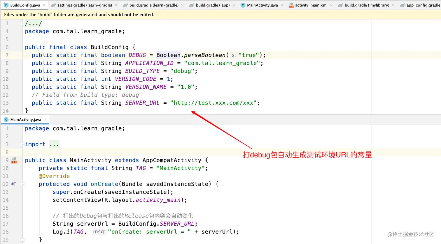 Build 一下工程,便会在 BuildConfig 中自动生成 URL 常量: